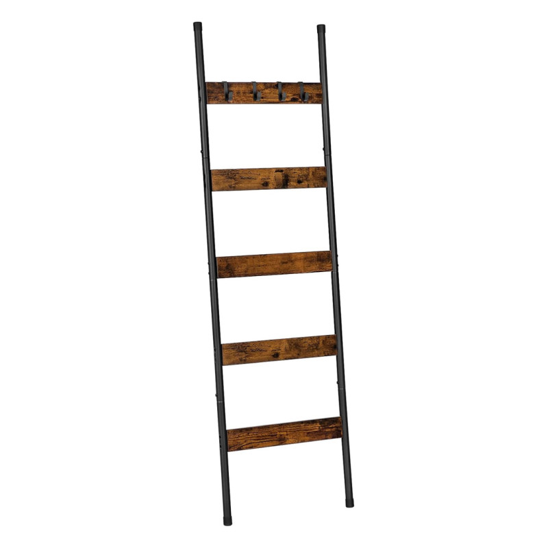 This ladder measures 17.3 inches wide and 63 inches tall, and offers five rungs and four hooks to hang items. There is also a taller one available, measuring 72.6 inches tall with six rungs. It's super lightweight with no installation, making it easy to maneuver around the house wherever needed, but it does include an anti-tip kit and tube sleeves that prevent slipping and scratching the floor, increasing its stability. The Rustic Brown color offers a farmhouse feel and the best price, but it's also available in greige, white, and black.