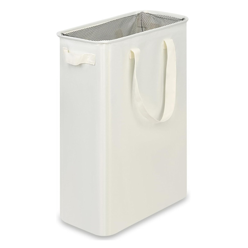 The Efluky Slim Laundry Basket doesn't have a big footprint, but it still fits a good amount of items, making it a great option to place in the closet, between the washer and dryer, or in the corner of the bathroom. The handles make it easy to carry back and forth, and it can be folded and stored flat when not in use. It also makes great crafting or holiday storage for fabric, wrapping paper, or even towel storage for just $14 at Amazon.