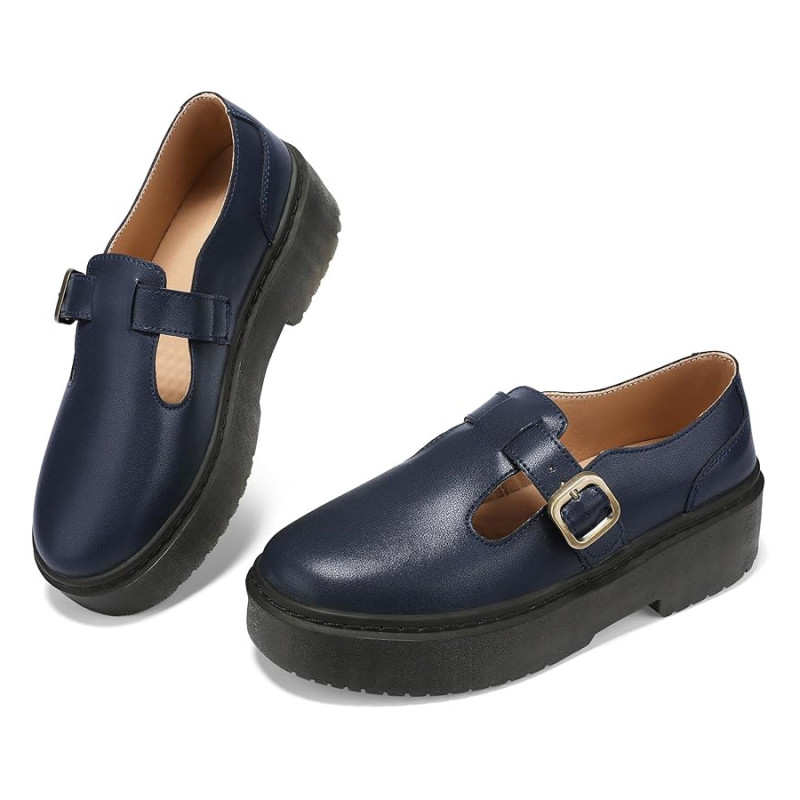 These vintage-style shoes offer all-day comfort, featuring plus cushioning with microfiber uppers and soft memory foam insoles to keep you comfortable with every step. The platform design adds height and sophistication without sacrificing comfort, offering an alternative to uncomfortable heels. The sturdy rubber outer sole also adds stability, and the tread is durable and slip-resistant. The gold buckle pops against the navy blue color, but the shoe is also available in Azure, red, dark red, pink, and many more colors.