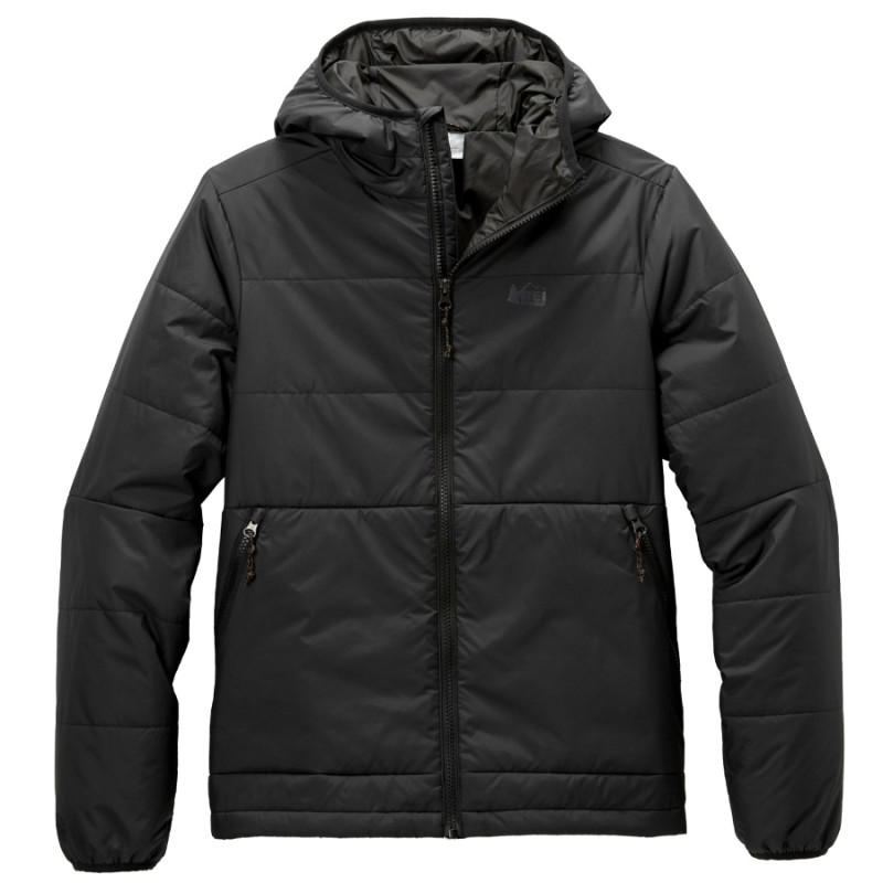 This hoodie is made from 100% recycled polyester and meets The Climate Label certification to reduce carbon emissions. The materials also meet bluesign criteria, which is a sustainability certification, so you can feel good about your purchase. The insulation is made of 98% recycled polyester that prevents bulk while still keeping you warm, allowing you to easily layer up. The hoodie is machine washable and features a locker loop for easy storage. It's available in three colors, including black, REI red, and Hydro Teal, though available sizes may vary.