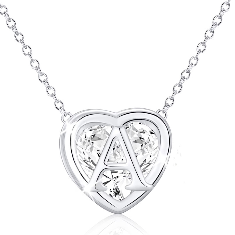 This necklace is made of sterling silver, plated with 18K white gold, and features a delicate heart and a small initial on a background of cubic zirconia. While cubic zirconia was once considered a pale imitation of a real diamond, the field has advanced considerably over the years, and today's cubic zirconias are higher quality than ever before (not to mention a more thoughtful alternative to real diamonds, if you're aware of their conflicted history).