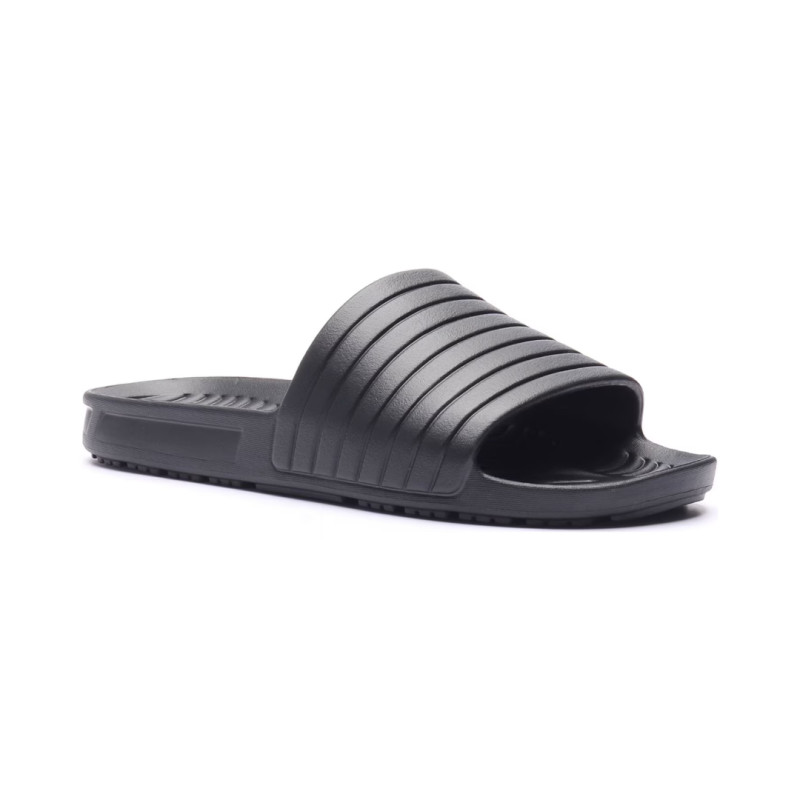 These open-toed slip-on sandals from Athletic Works are made with a 100% ethylene-vinyl acetate (EVA) upper, a 100% EVA outsole, and a 100% EVA insole, offering laid-back comfort and waterproofing for any occasion the day's adventures might call for. You can slide right in and out of them in an instant, and they fit true to size (U.S. men's standard), so you can safely order your normal shoe size online and know what you're getting ahead of time. They have a nice textured footbed, as well, so they won't come off unless you want them to.